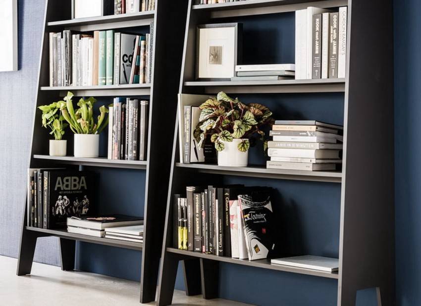 Чаще всего шкафы располагают вдоль стен. Модель шкафа выбирается в зависимости от количества книг для хранения и отведенных размеров помещения. Угловой книжный шкаф используется в малых помещениях. Он сочетает в себе небольшие размеры и вместительность, может иметь дополнительные ящики и полки