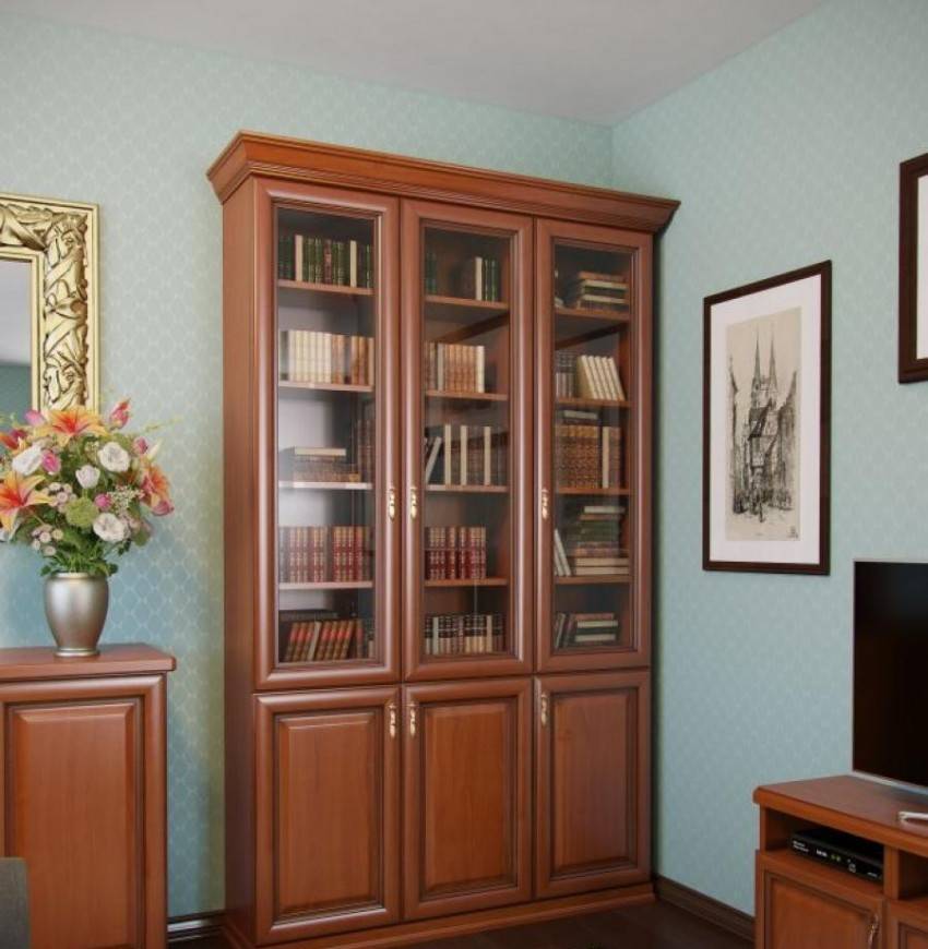 При выборе шкафа следует обратить внимание на возможность регулировки полок по высоте, для удобного размещения домашней библиотеки.
