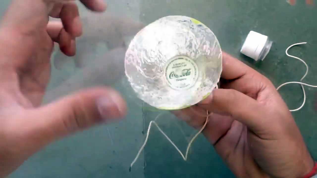 Изготовление этого варианта фонарика из пластиковой бутылки такое же, даже немного проще. Только фонарик нужно вырезать не из целой бутылки, а из ее части. Продевать проволоку с бусинкой не нужно.