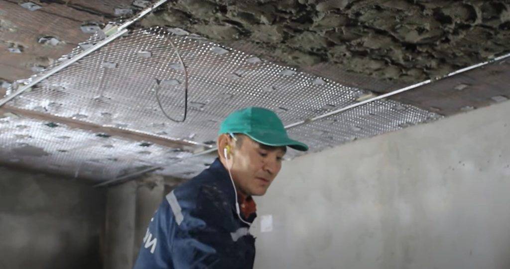 Если древесная основа потолка подвержена образованию грибка из-за неблагоприятных условий эксплуатации, перед устройством штукатурки её необходимо обработать антисептиком. Для уничтожения бактерий и других микроорганизмов следует применять буру или медный купорос.