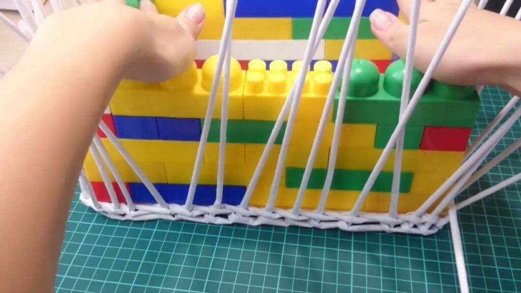 Органайзер из бумажных трубочек может быть квадратной, круглой, прямоугольной формы. Задать нужную форму поможет положенная внутрь коробка, упаковка от чего-либо, или, как в нашем мастер-классе — детский конструктор. Плести такую шкатулку лучше из белой офисной бумаги, в таком случае изделие можно не красить сверху краской. Трубочки из газетной бумаги придётся обрабатывать морилкой, иначе на трубочках будут просвечивать буквы.