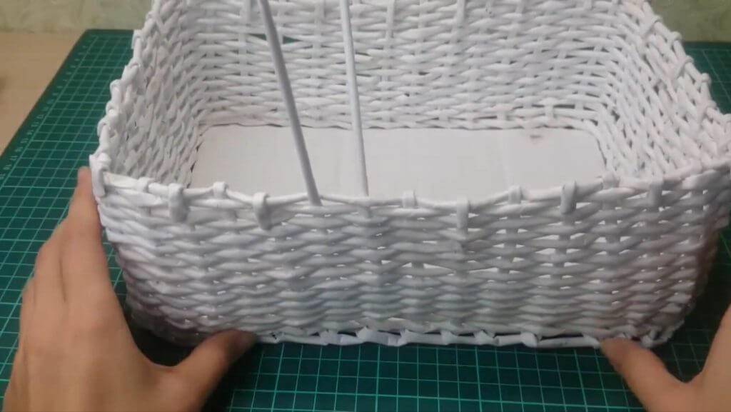 Вставляем внутрь коробку или другой предмет. И далее плетём стенки одиночным плетением (а) уже до нужной нам высоты.