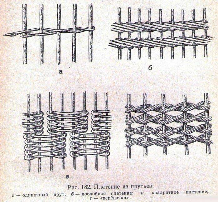 Как вы наверное знаете, виды плетения бывают разные: одиночное (а), послойное (б), “верёвочка” (г). Наш мастер-класс выполнен плетением “верёвочка”. Размер дна органайзера – 21/30 см. Высота – по вашему желанию.