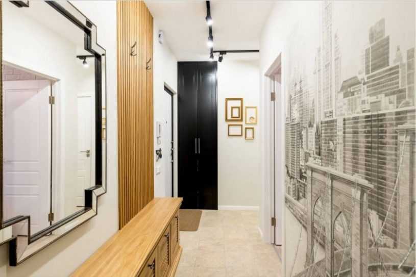 При планировке узкой прихожей нужно визуально убрать недостатки геометрии помещения. Это можно сделать особым расположением вещей:
