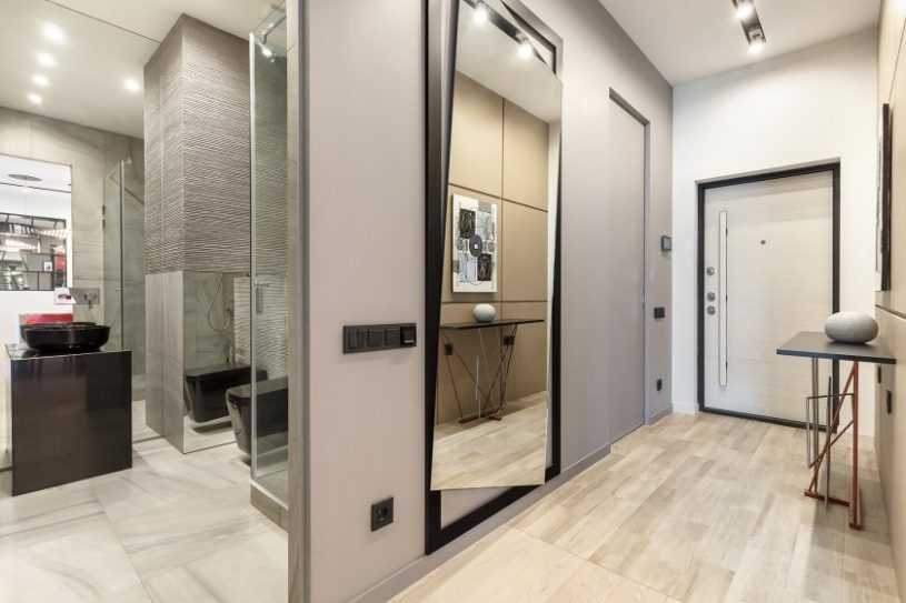 Чем зеркал больше и чем они больше, тем лучше. Шкаф-купе с зеркальными дверцами и зеркальное панно на стене — хорошие варианты для расширения тесной входной зоны, и уместные — с точки зрения функциональности помещения.
