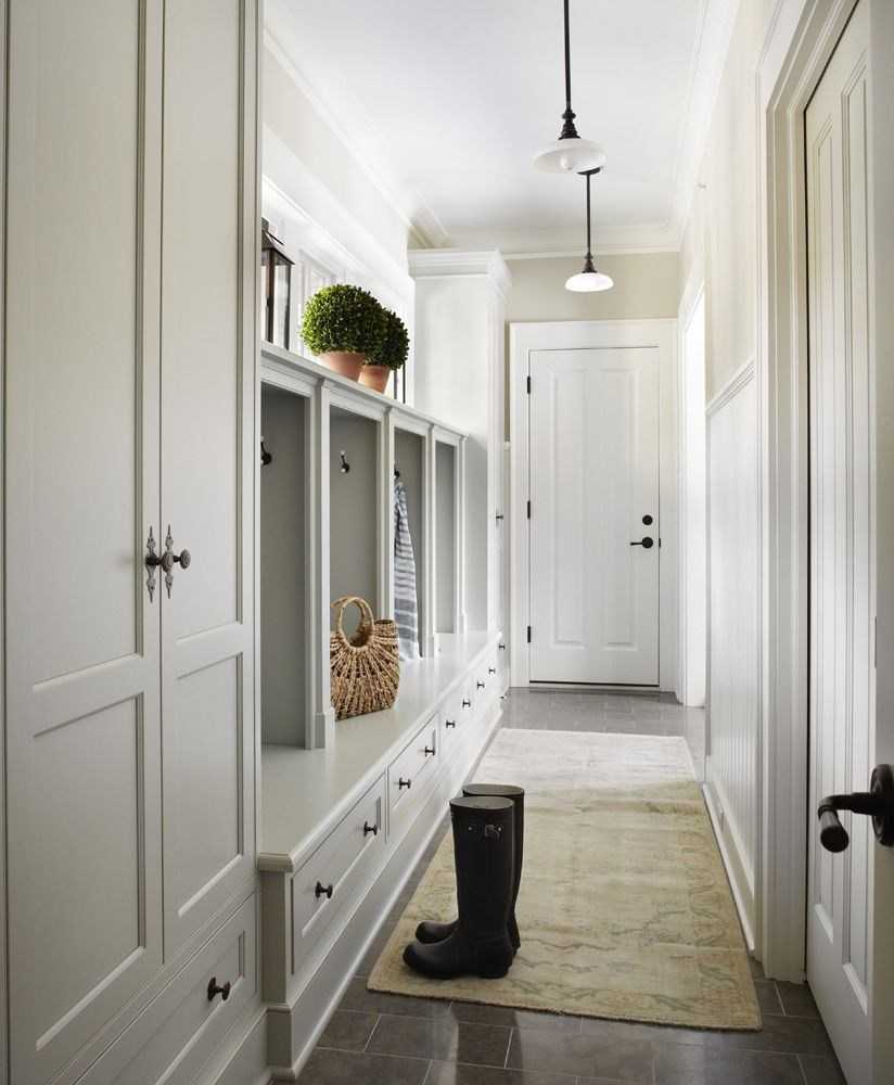 Если такой возможности нет, то обязательно прикрутите к стене крючки в том количестве, в котором будет комфортно всем членам семьи. Следующая зона коридора – место хранения вещей. В узком пространстве лучше выбирать модели не шире 30 см, но если такой возможности нет, то можно использовать более габаритные модели.