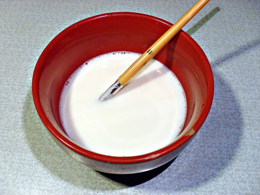 - Так как у самодельной эмульсии из подобных продуктов низкая устойчивость к влаге, рекомендуется добавлять в состав столярный клей. Для одного ведра смеси хватит одного стакана столярного клея.