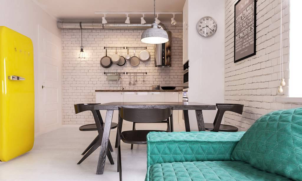 Различная бытовая техника занимает очень много места для хранения. Чтобы максимально разгрузить место в шкафчиках, можно использовать более современную технику. Например, мультиварку вместо пароварки, которая сочетает в себе гораздо больше функций. И, конечно, не стоит забывать о хорошей вытяжке, интерьер небольшой квартиры-студии без нее невозможен.