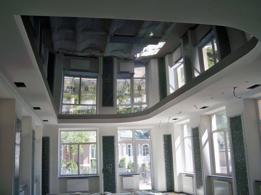 Зеркальный потолок очень эффективно увеличивает высоту помешения