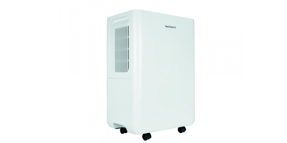 На четвёртом месте NeoClima FD-24AH. Это модель для помещений площадью до 42 кв. м, поэтому подойдёт не только для бытового, но и для коммерческого использования. Производительность – около 25 л в сутки. Осушитель оснащён интуитивно понятной панелью управления с дисплеем. Пользователь может выбирать скорость работы вентилятора, программировать длительность работы, регулировать интенсивность осушения и получать данные о текущем и заданном параметре влажности (на дисплее).