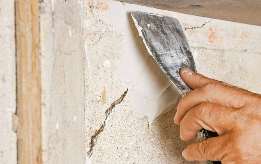 После снятия верхних слоев, основание визуально обследуется на предмет дефектов. Старые слои штукатурки удаляются.