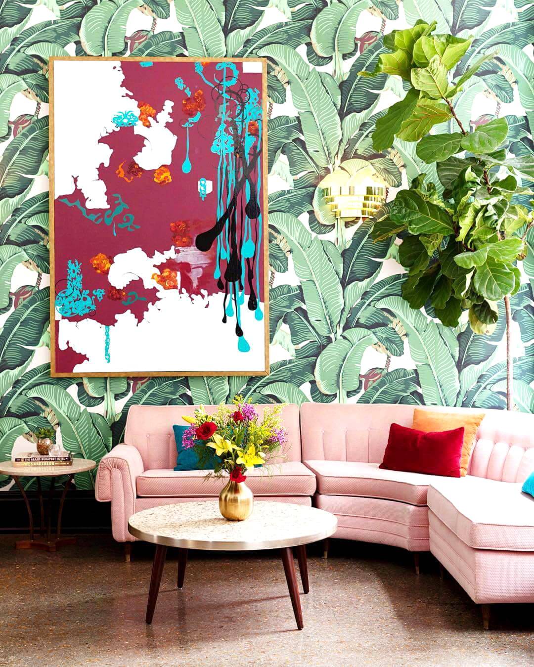 Чаще всего цвет мебели совпадает с оттенком, присутствующим на акцентной стене. Решая, какой цвет обоев выбрать под мебель, вы можете учитывать и мельчайшие детали, вплоть до декоративных подушек на диванах или мягкой обивки на стульях.