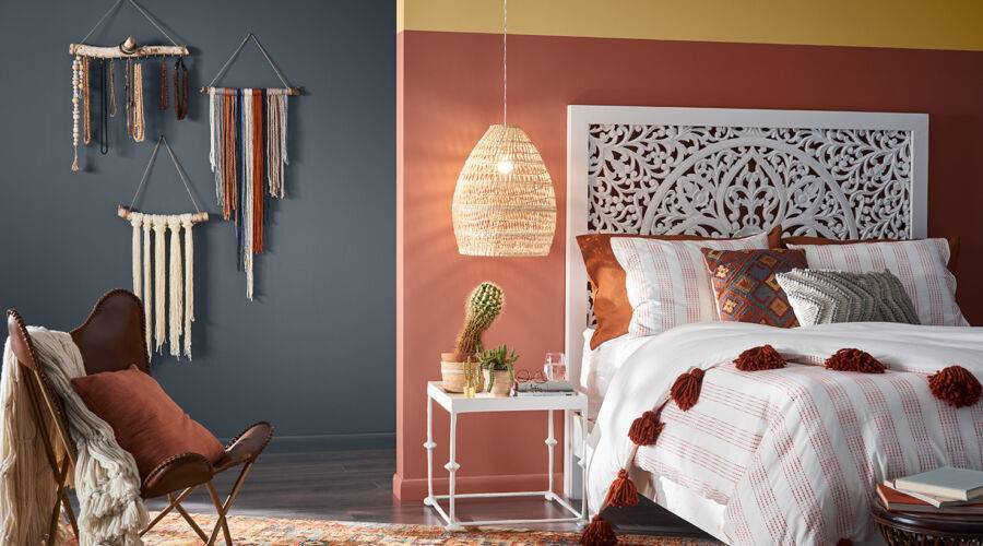 Выбор природных мотивов, соединение орнамента и геометрии наделит спальню уютом и светом.