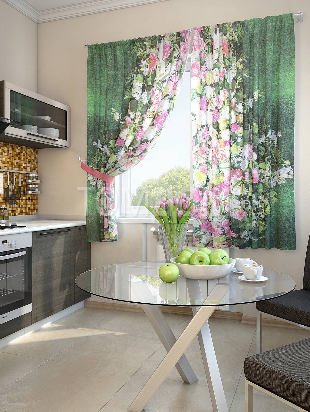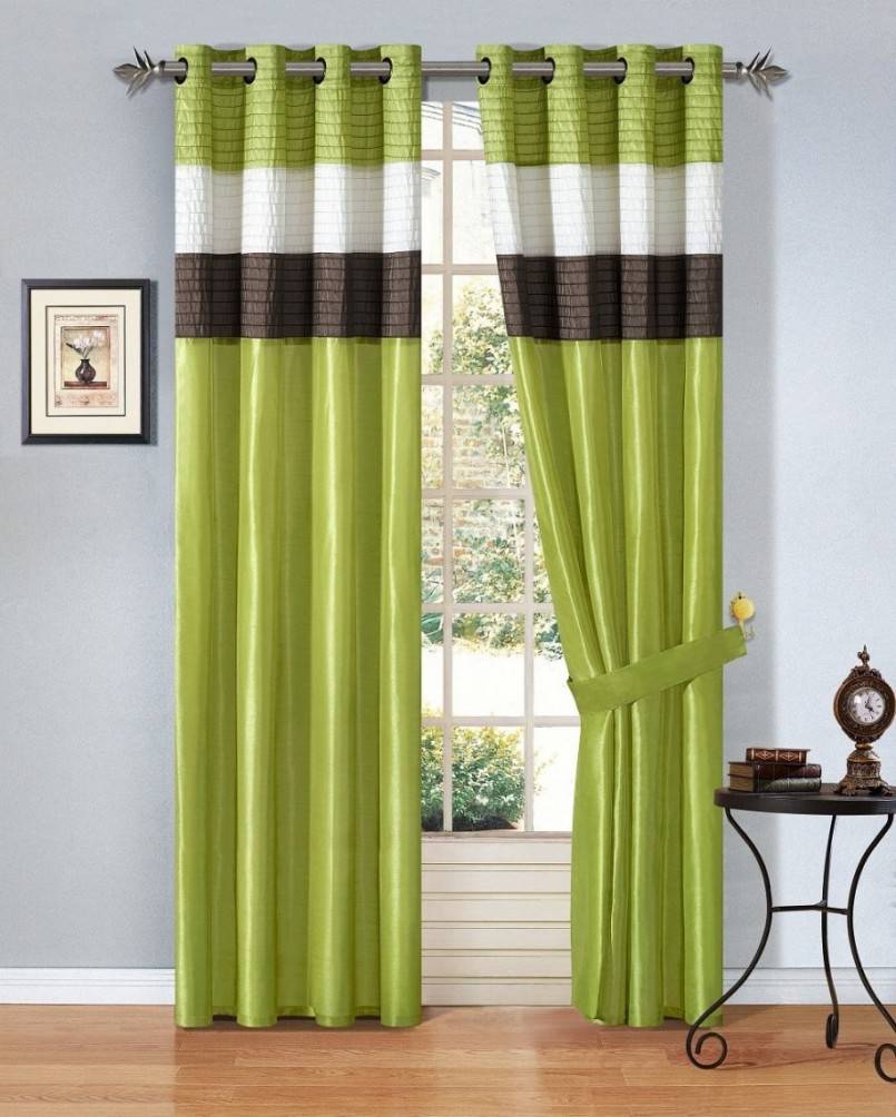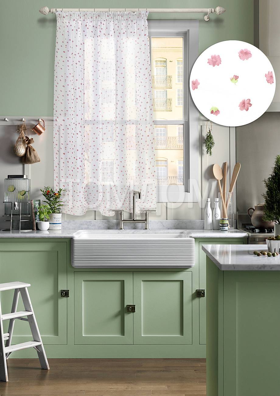 Варианты штор для кухни с зелеными обоями