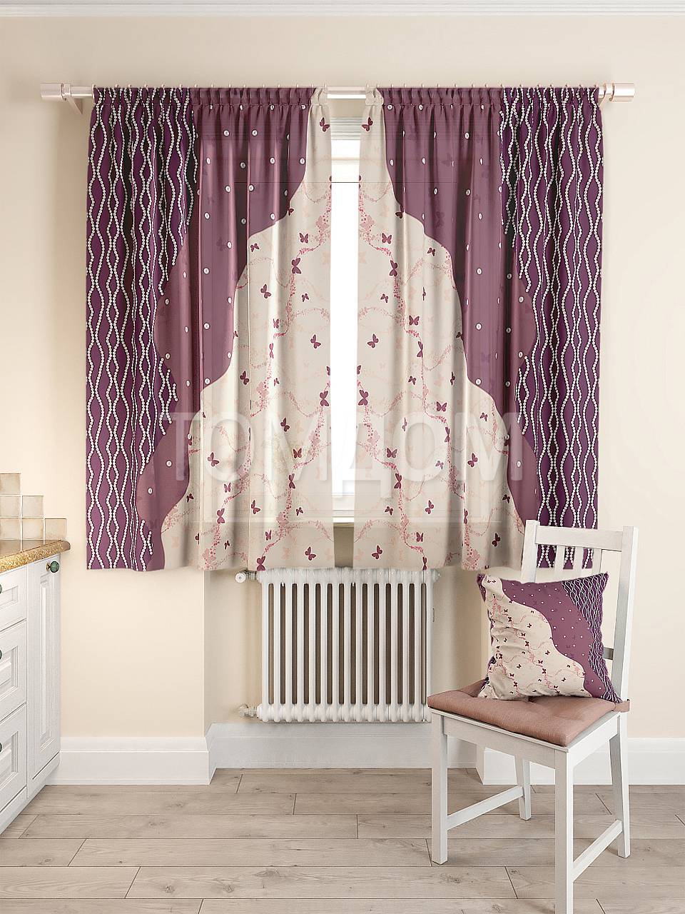 А если вы наоборот, подбираете обои к шторам, то к фиолетовым, сиреневым или лиловым шторам можно подобрать нейтрально бежевые обои.