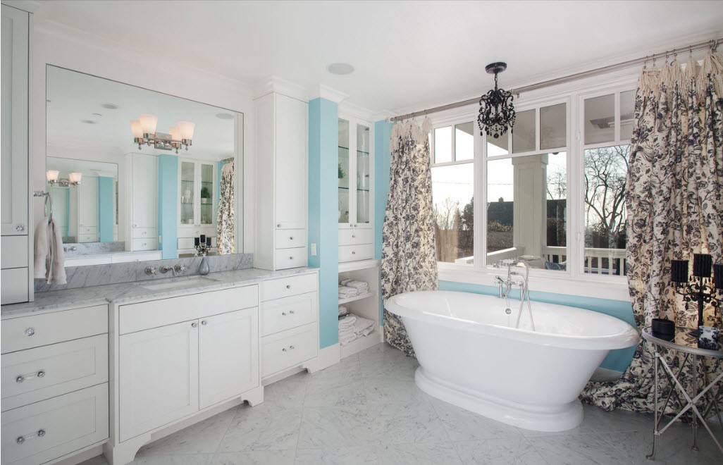Существует множество привлекательных двухцветных комбинаций, например, бежево-розовое сочетание, не создающее резких контрастов и позволяющее сформировать расслабленный, мягкий, теплый и очень уютный интерьер или классический черно-белый и элегантный серо-синий дуэт, который делает дизайн намного убедительнее.