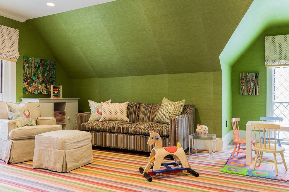 Для детской комнаты действуют те же правила, что для спальни. Дети не только спят, но и проводят свободное время, потому гамма для выбора расширяется. Оттенки розового, голубого, светло-желтого, молочного, синего, оранжевому, фиолетового подойдут больше всего.