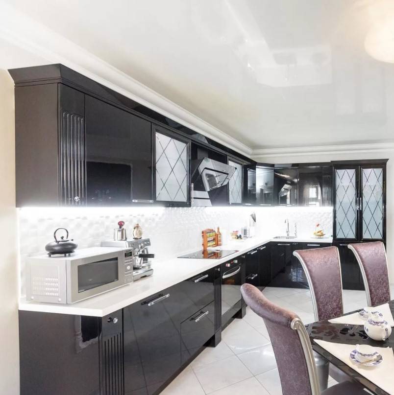 Вы сможете выбрать потолки матового или глянцевого типа. Опытный дизайнер предложит вам вариант потолок на кухне фото, что позволит выбрать желаемый вариант.