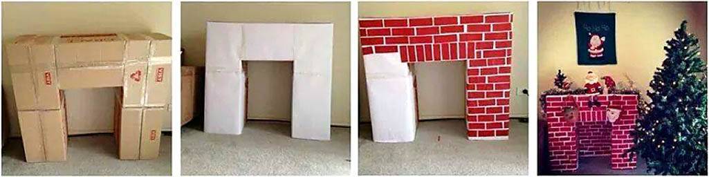 Как наскоро сделать праздничный камин из коробок