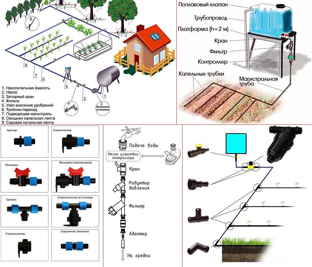 Схемы устройства систем капельного полива