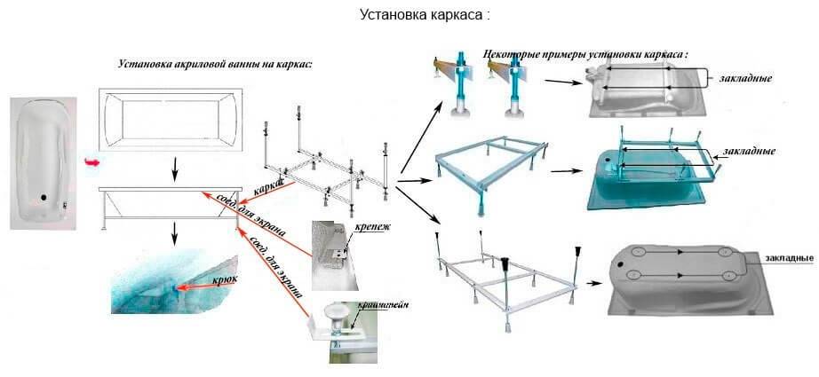 Установка ванны на готовом металлическом каркасе