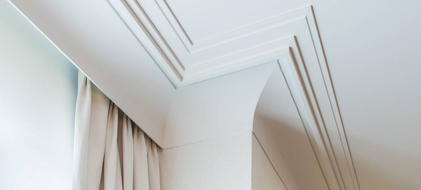 Потолочными называют карнизы, которые крепятся к потолку и они становятся все более популярными и вот почему. Первое — карниз на потолке визуально делает потолки выше, ведь нет горизонтального деления, что и дает такой эффект.