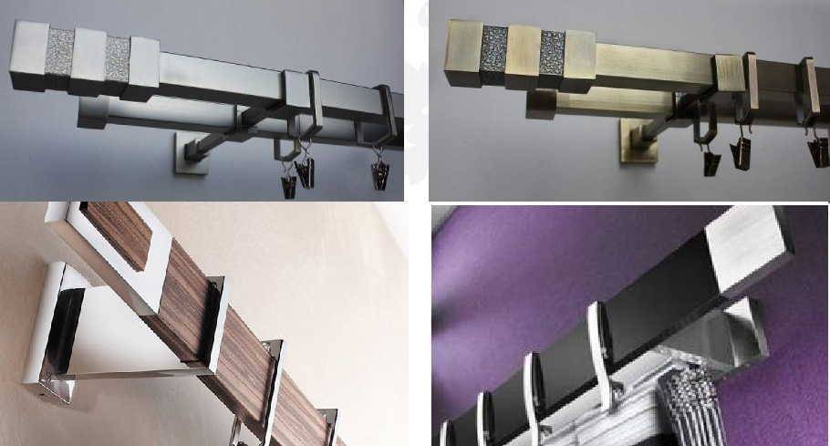 В основном трубчатые карнизы для штор имеют круглое сечение. Это классика. Но есть и квадратное сечение с соответствующими квадратными «кольцами» для навешивания штор. Смотрятся они стильно, подходят для интерьеров, оформленных в современных тенденциях: арт-деко, лофт, минимализм.