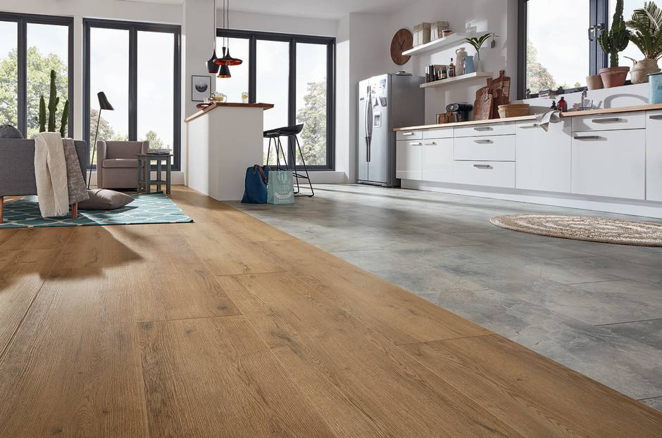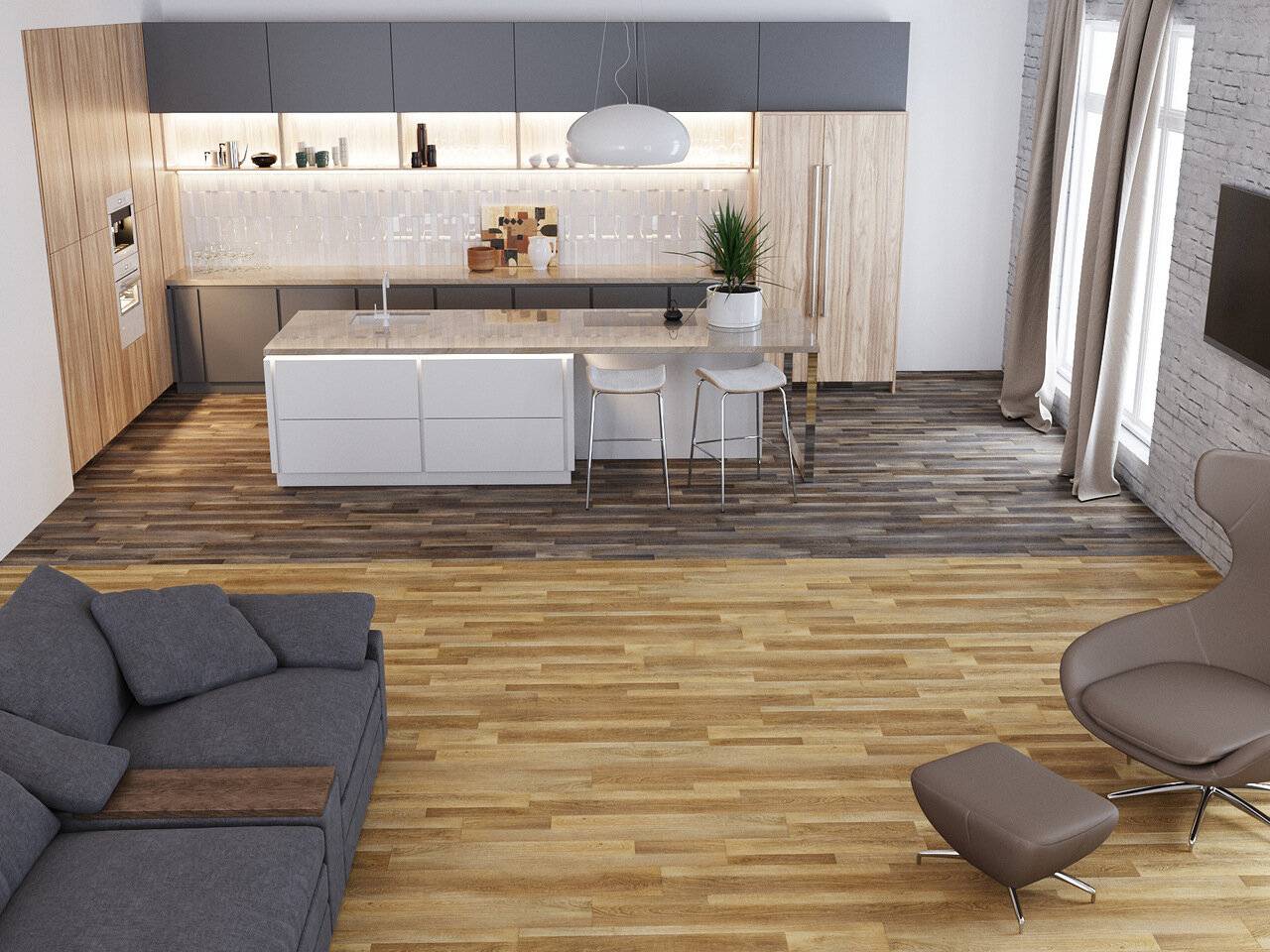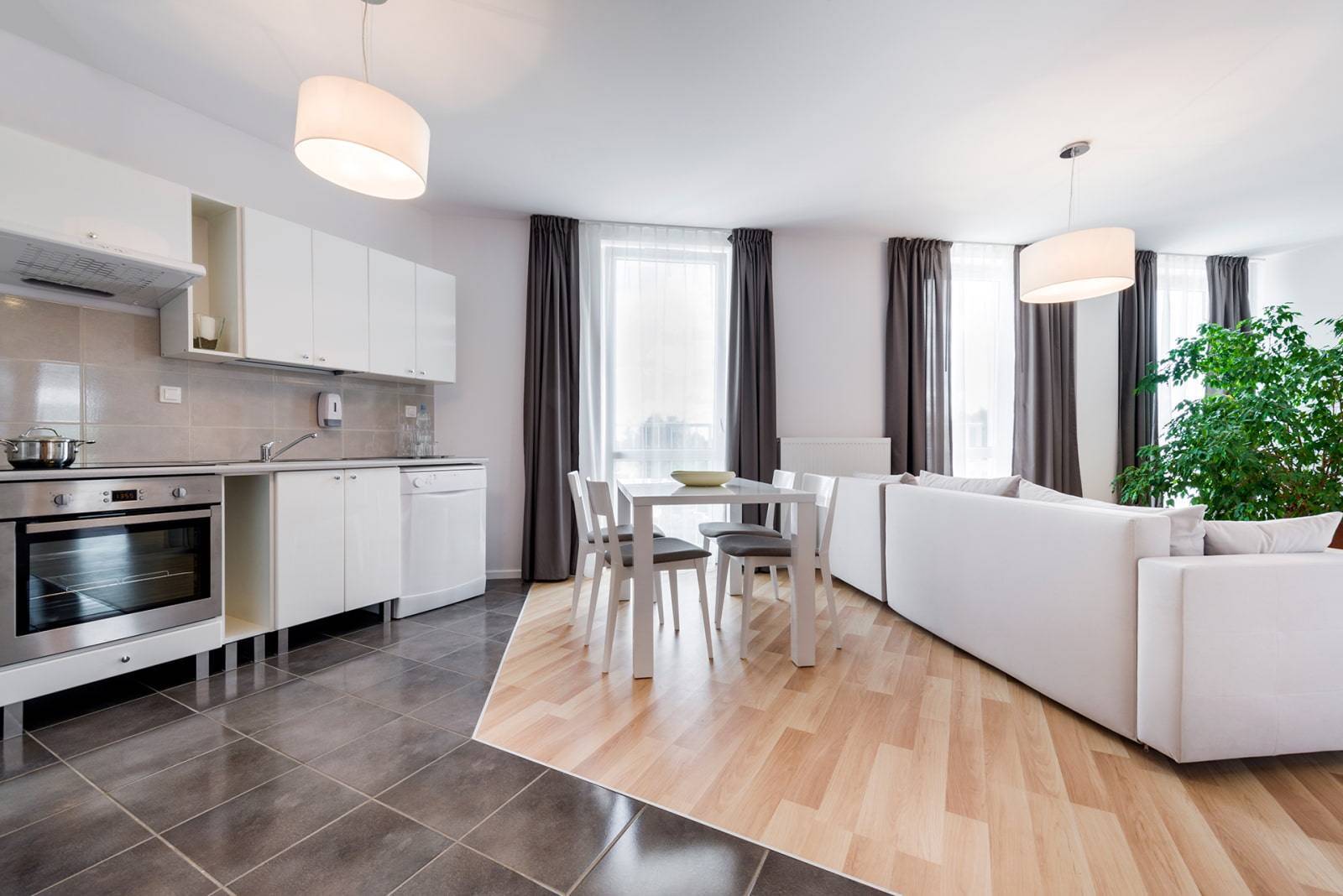 Кухня-гостиная: плитка и ламинат