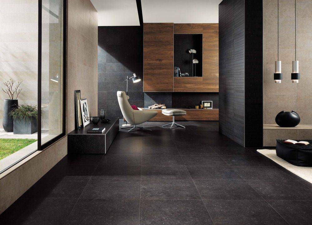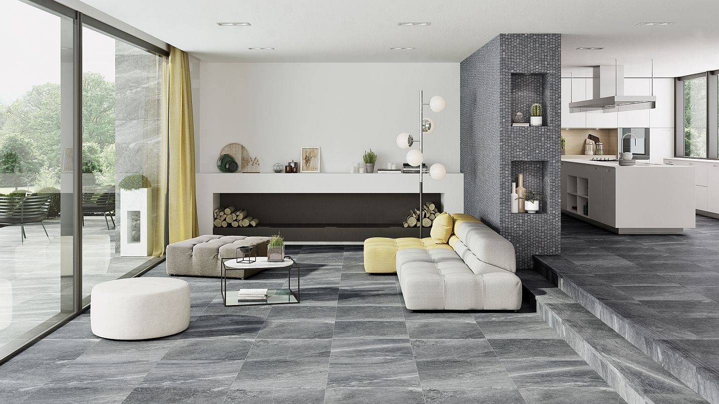 Плитка предлагается в огромном диапазоне цветов. Вы можете использовать привлекательный дизайн, который трудно найти на деревянных полах или ламинате. Плитка может быть использована для создания равномерного, элегантного пола. Особенно, когда выбираете большие однотонные варианты, например, 60 × 60 см или даже 75 × 75 см. Однородную поверхность, например, имитирующую бетон, легче всего получить с использованием выпрямленных плиток (края обрезаются под прямым углом). Современные бетонные плитки имеют размер 75 × 75 см, что позволяет им создавать практически равномерный пол.