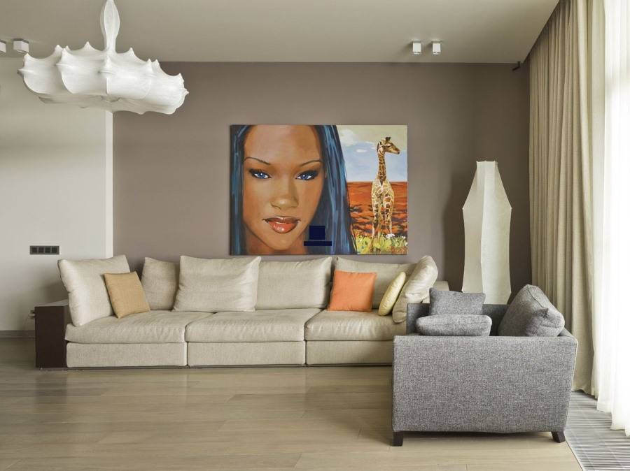 Главное, что картины в интерьере гостиной независимо от жанра бывают разных стилей, что только расширяет их применение. Например, если зал выполнен в стиле лофт, то ему больше подходит авангардная (разноцветная) живопись или черно-белая графика.
