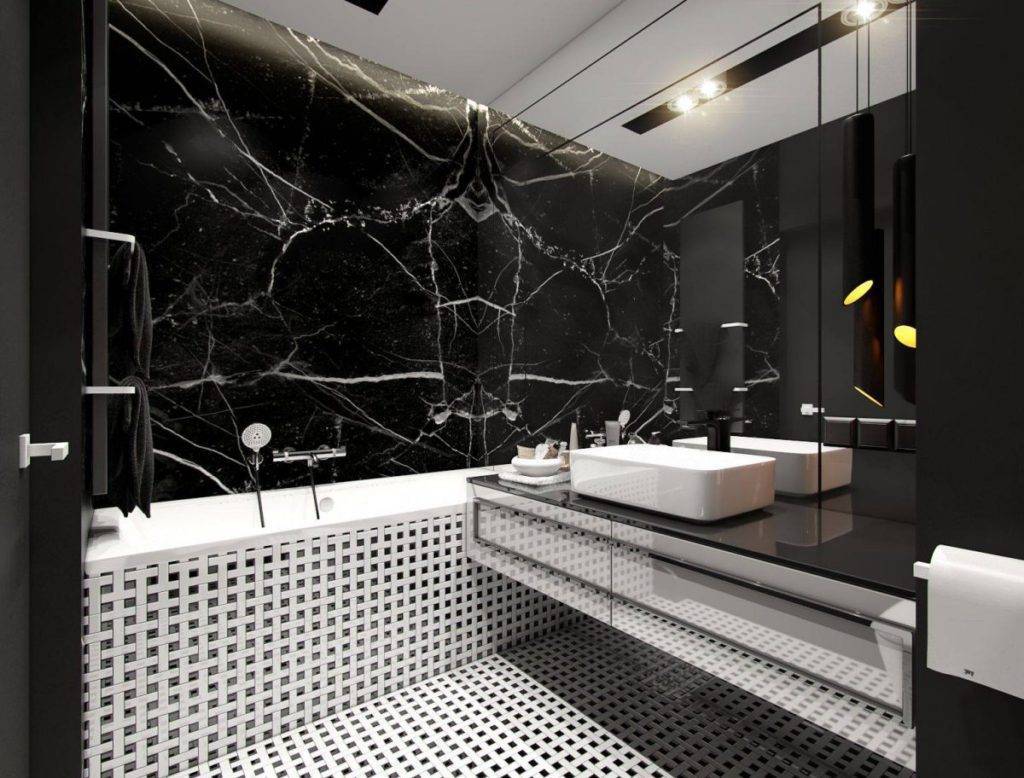 В стиль богемный шик арт-деко удачно впишется кафель контрастный по цвету