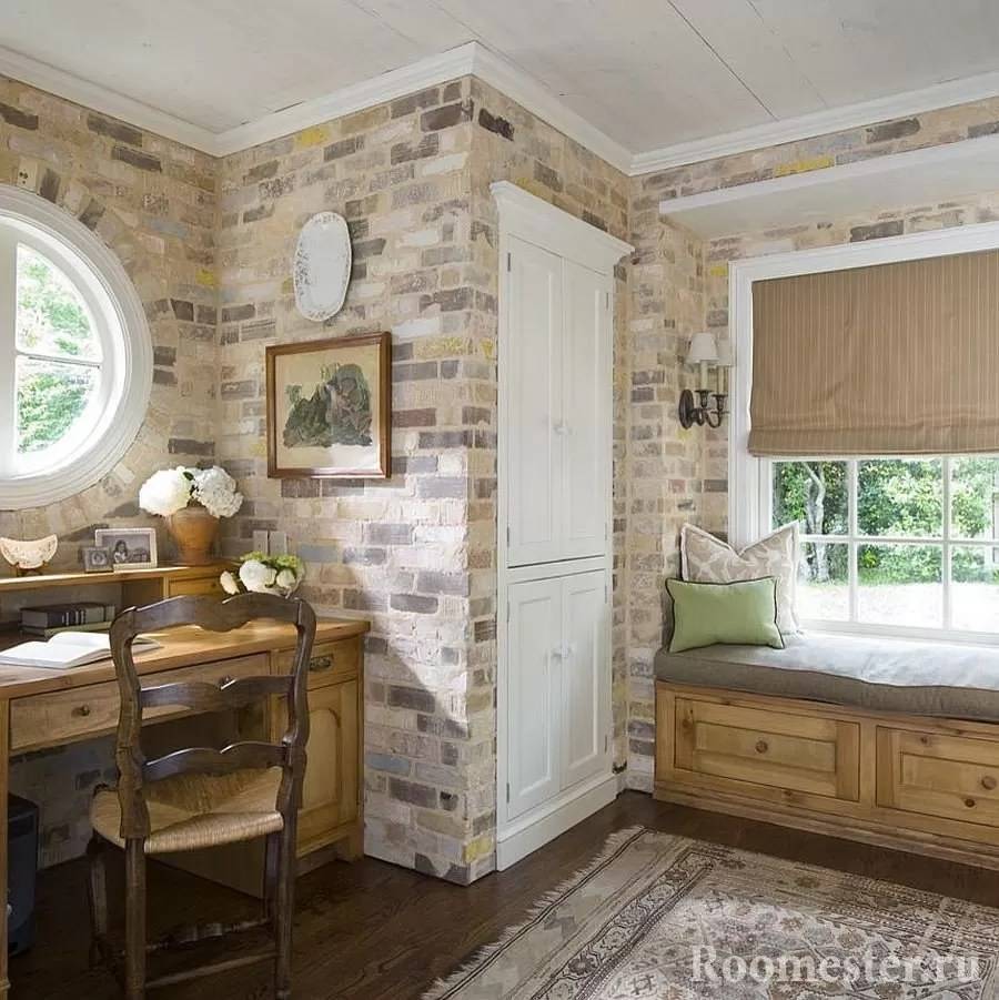 Иногда невозможно задействовать естественный способ отделки, когда используется настоящая, уже имеющаяся кирпичная стена.