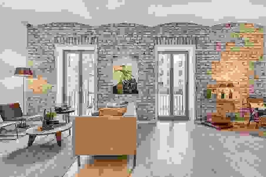 Интерьер гостиной с обоями под кирпич (подборка фото)
