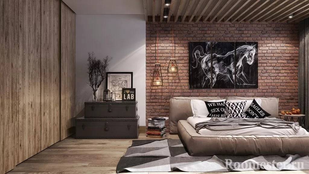 Невероятно, но факт, экономия на отделке вдруг стала признаком оригинального и эксклюзивного дизайна. Кирпичные стены в интерьере не имеют чётко обозначенных границ применения. Их использование возможно в любой комнате – от прихожей до спальни. Это отличный способ создать индивидуальную и практически осязаемую атмосферу стиля. Кирпичная стена в натуральном виде не требует особой отделки. Для того чтобы оставить её естественную фактуру и цвет достаточно слегка зачистить поверхность, загрунтовать и обновить швы. Такая аутентичная стена станет идеальным дополнением интерьера в стиле .