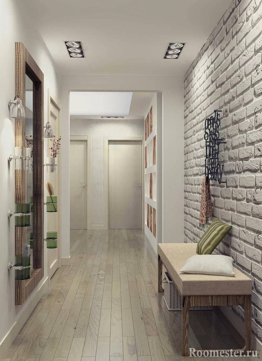 - декорирование кирпичом искусственно созданных колонн в длинном коридоре как способ уравновешивания пространства;