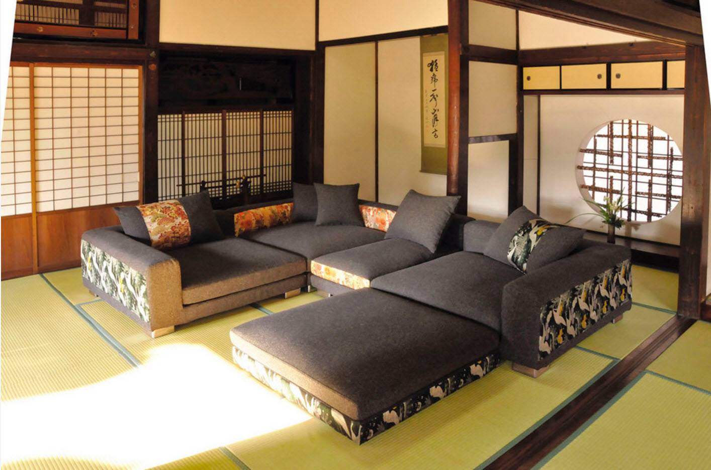 мебель — в японском доме нет специальной мебели для сна или сидения, все эти функции выполняет специальный матрас — футон. Поскольку весь дизайн в японском стиле разработан специально для сидящего человека, простейшая идея японской мебели — это столы, стулья, диван и кровати, из которых просто выпиливались ножки. Вся японская мебель невысокая, приземистая по конструкции, но достаточно удобная. Японский шкаф-купе имитирует стены, фасады гладкие, без декора, с выразительной резьбой, фурнитура неброская. Все книги помещаются в специальные ящики: тансу, своего рода комод на колесиках. Современная японская кровать — это уже не просто матрас или татами, это привычная европейцу кровать с изголовьем, только очень низким, без ножек
