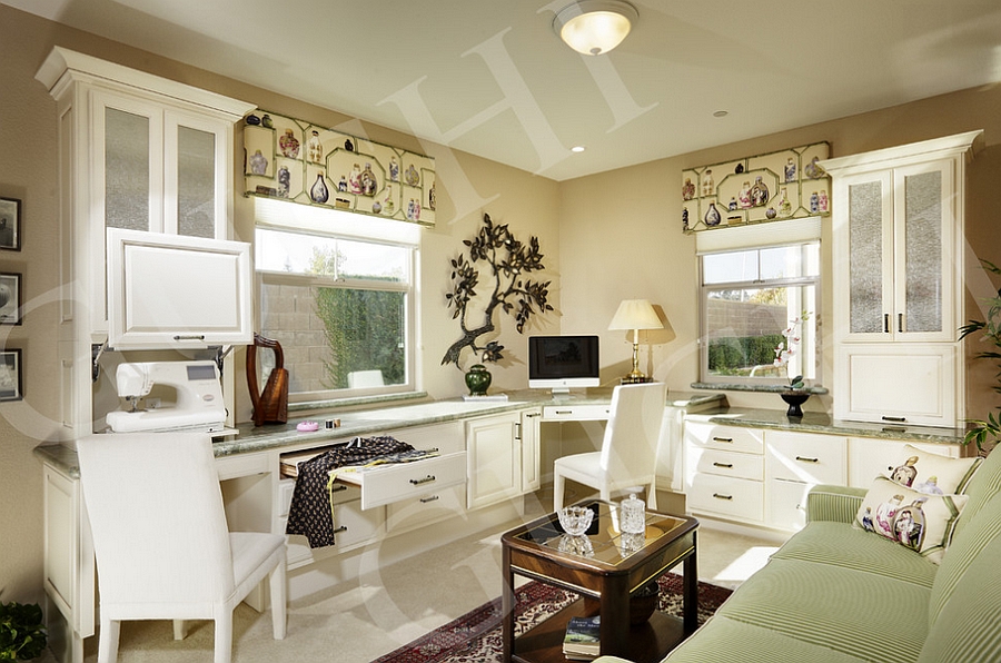 Уголок для шитья соседствует с рабочим местом в едином эргономичном пространстве
