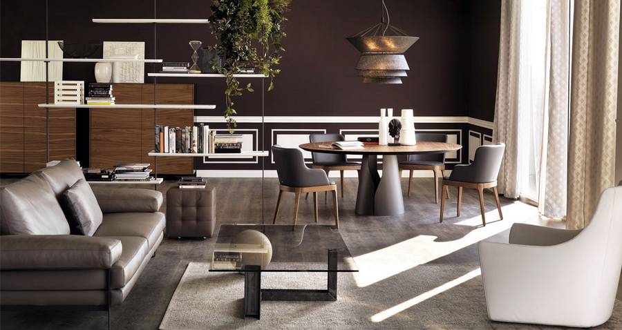 В светлом интерьере эффектно смотрится мебель из тёмного дерева
