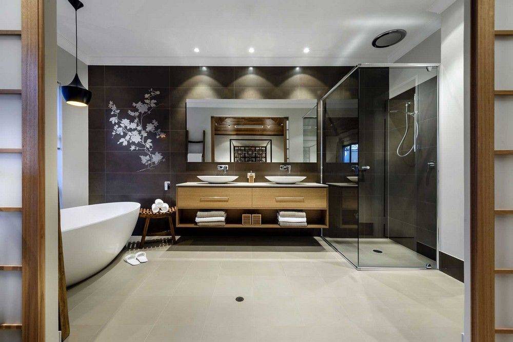 Ванные комнаты из мрамора и дерева смотрятся стильно и минималистично