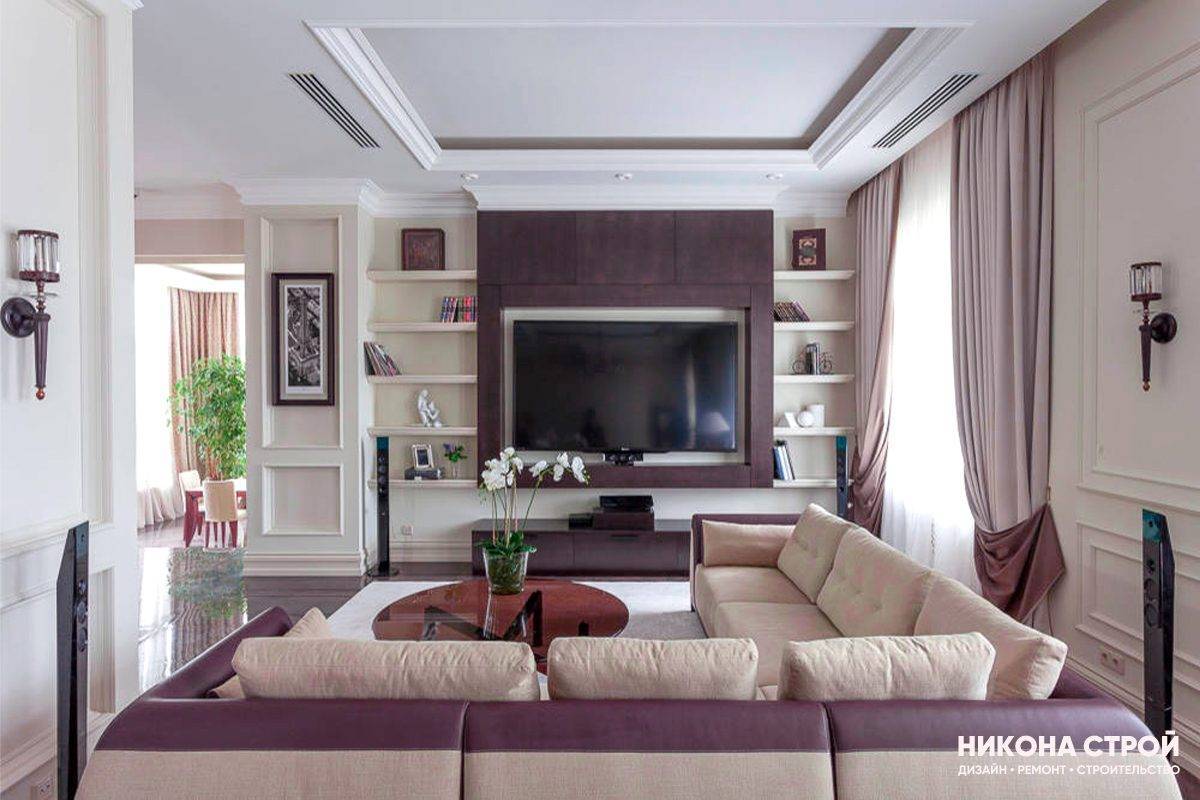 Чаще всего красивые интерьеры квартир в классическом стиле начинаются с просторной гостиной с высокими потолками – здесь проходят «приемы», или посиделки с друзьями и родственниками.