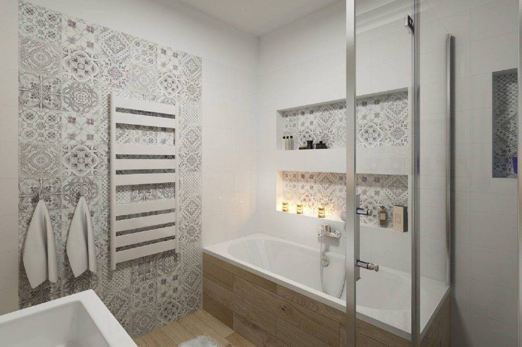 Ванна со стеной в обоях