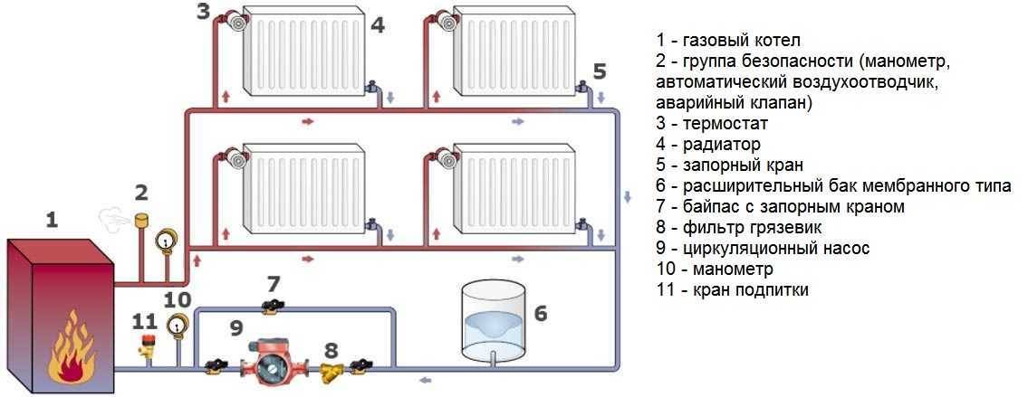 Есть еще системы комбинированные — они спроектированы как гравитационные, но имеют встроенный циркуляционный насос. Такое решение можно назвать идеальным с точки зрения практичности: пока свет есть, отопление работает как принудительное, как только электропитание пропало, все работает как гравитационная система. В общем, неплохой вариант, за исключением того, что трубы будут проведены большие и слишком уж на виду.