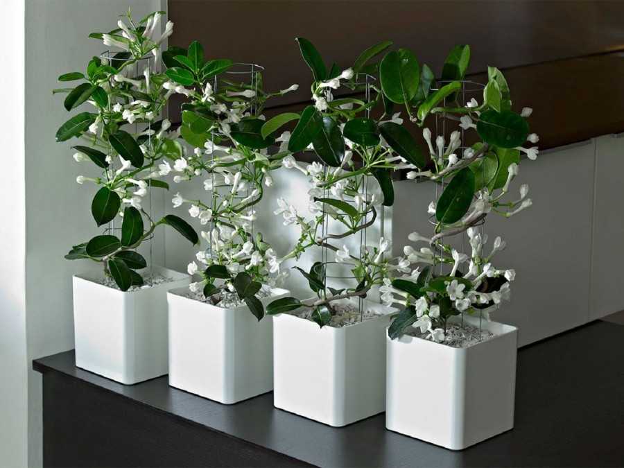 Очень популярен фикус с пестрой листвой, так как он сохраняет привлекательный внешний вид на протяжении всего года. Неприхотлив, кроме того, он выделяет определенные вещества, которые способствуют очистке воздуха от бактерий, и создает в помещении хороший микроклимат. Среди цветущих можно выделить такие популярные виды для дома как: стефанотис, кливия, гардения, камелия и эхмея. При должном уходе они будут радовать обильным и длительным цветением.