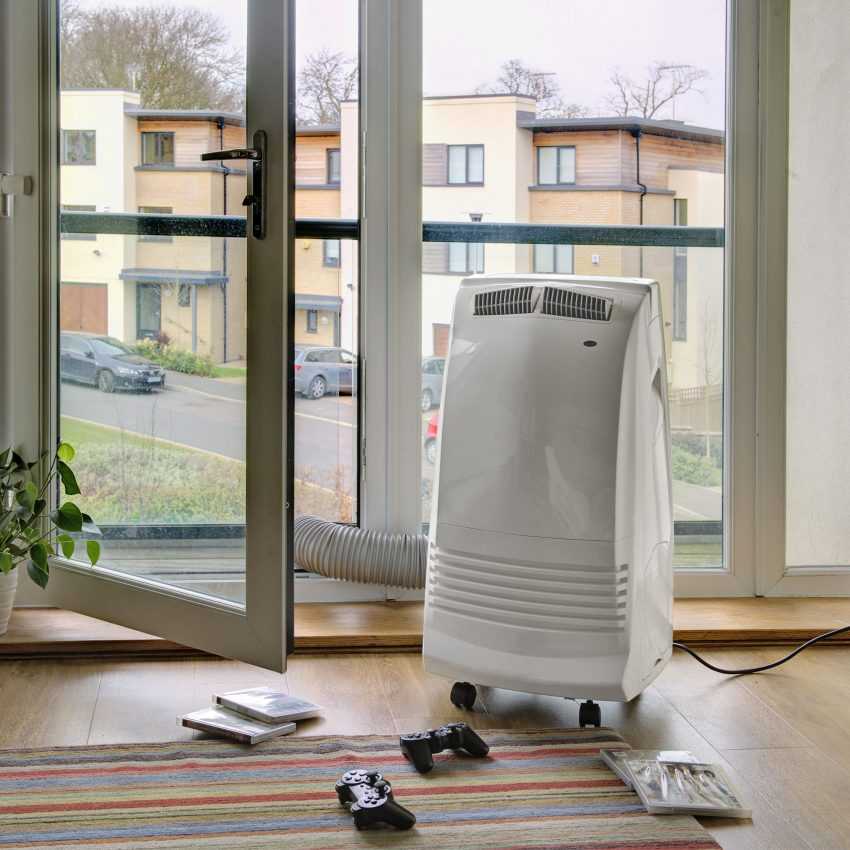Мобильный кондиционер или моноблок больше подходит для загородного дома или офиса. Вызывать специалистов для его установки не потребуется – устройство можно поставить куда нужно и вывесить воздуховод в открытое окно. Но если на улице шумно, понадобятся специальные накладки на окна, которые зимой пропускают в дом холод.