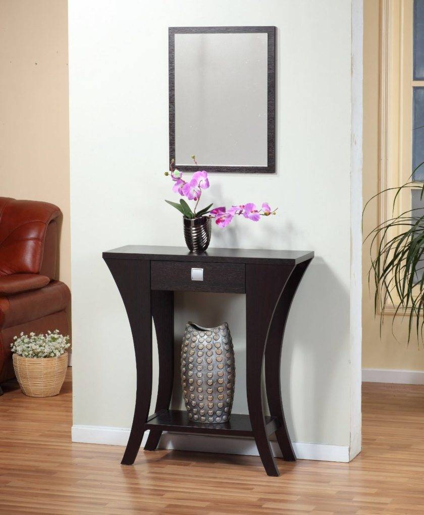 Она может гармонично дополнить интерьер или стать изюминкой, привлекающей внимание. Многие производители выпускают консоли в комплекте с зеркалом, выполненным в таком же стиле. Это усиливает эстетический эффект, позволяя использовать столик в качестве самостоятельного украшения помещения