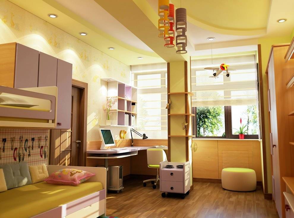 Конструктивизм редко применяется для оформления детской комнаты. Ребенку подобное помещение может показаться излишне скучным, однако есть в стилистике и свои плюсы. С учетом детских запросов, растущих с каждым годом, характер крохи в практичных условиях может сформироваться совсем по иному образцу. Естественно в помещении ярких акцентов будет больше, чем в других комнатах. В качестве исключения допускается наличие рисунка: геометрические формы и их комбинации. Весь мебельный минимум умещается в одном углу: кровать-«чердак» с зоной для хранения и рабочим местом.
