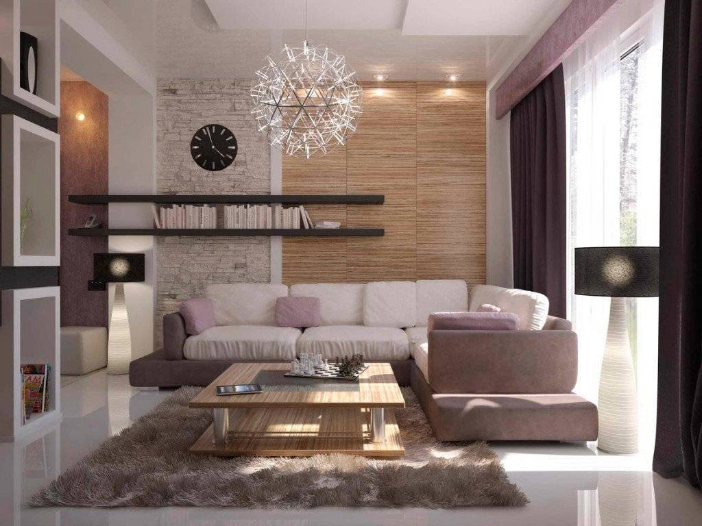 Этот стиль подойдёт для гостиной любых размеров. Светлые тона, применяемые на стенах и потолке, помогут визуально расширить малогабаритное помещение. Для расширения пространства и выделения можно использовать акриловые перегородки, панели из стекла, вертикальные конструкции.