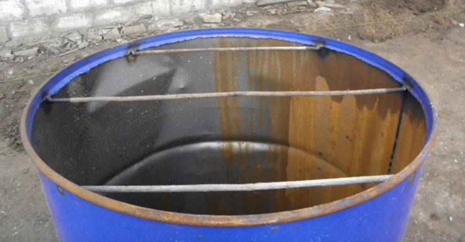 Бочку устанавливают на кирпичную либо бревенчатую подставку. Если не подготовить основание перед установкой, во время приготовления от образующегося конденсата почва размокнет. Внизу должна быть решётка, на которую кладут мокрую ткань и увлажняют её в процессе приготовления чтобы не летел пепел.