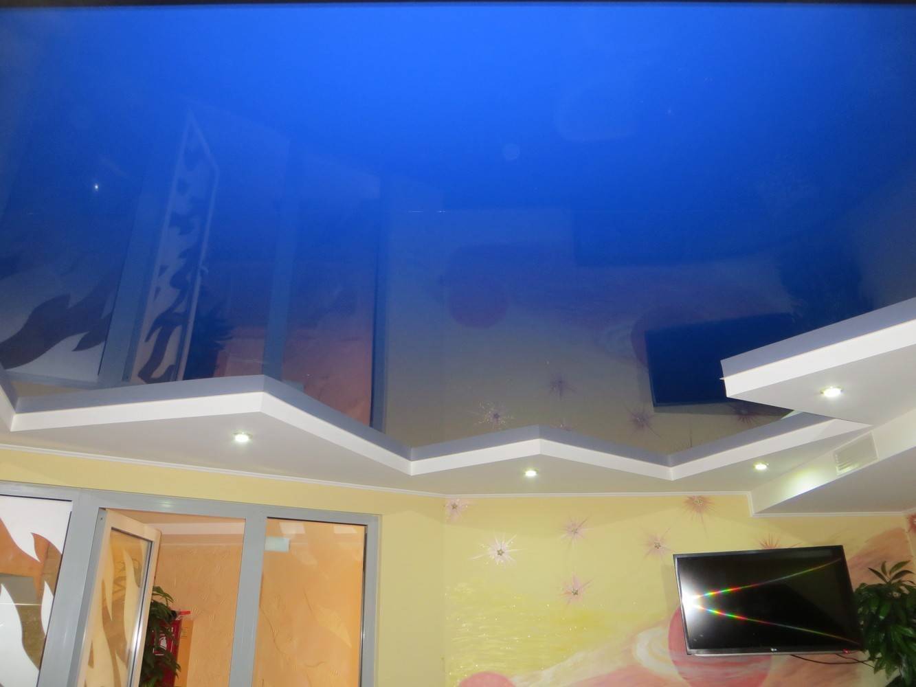 Для кухни дизайнеры рекомендуют применять глянцевые покрытия с хорошей светоотражающей способностью. Такой цветной потолок, где будут отражаться предметы интерьера, сделает помещение колоритным, визуально увеличит объем, прибавит красок.