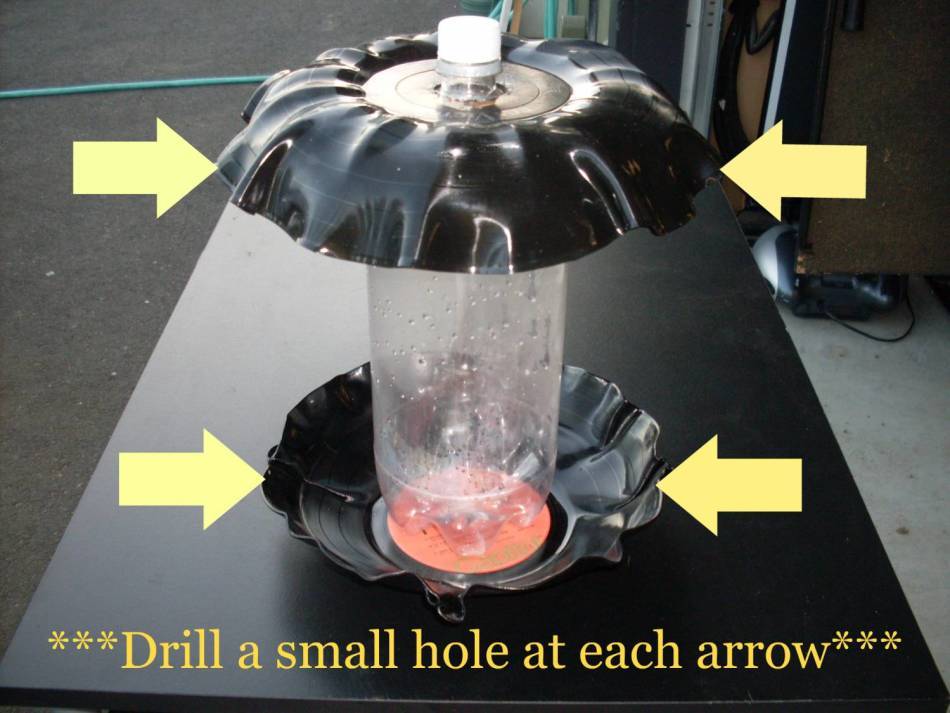 - у горлышка бутылки проколите горячим гвоздем несколько дырочек для подачи корма